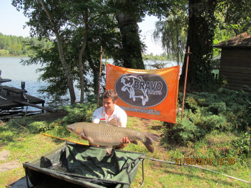 Szélcsend, 15 perces fárasztás csónakból. Az RSD Carp Cup bojlis versenyen fogott hal.
