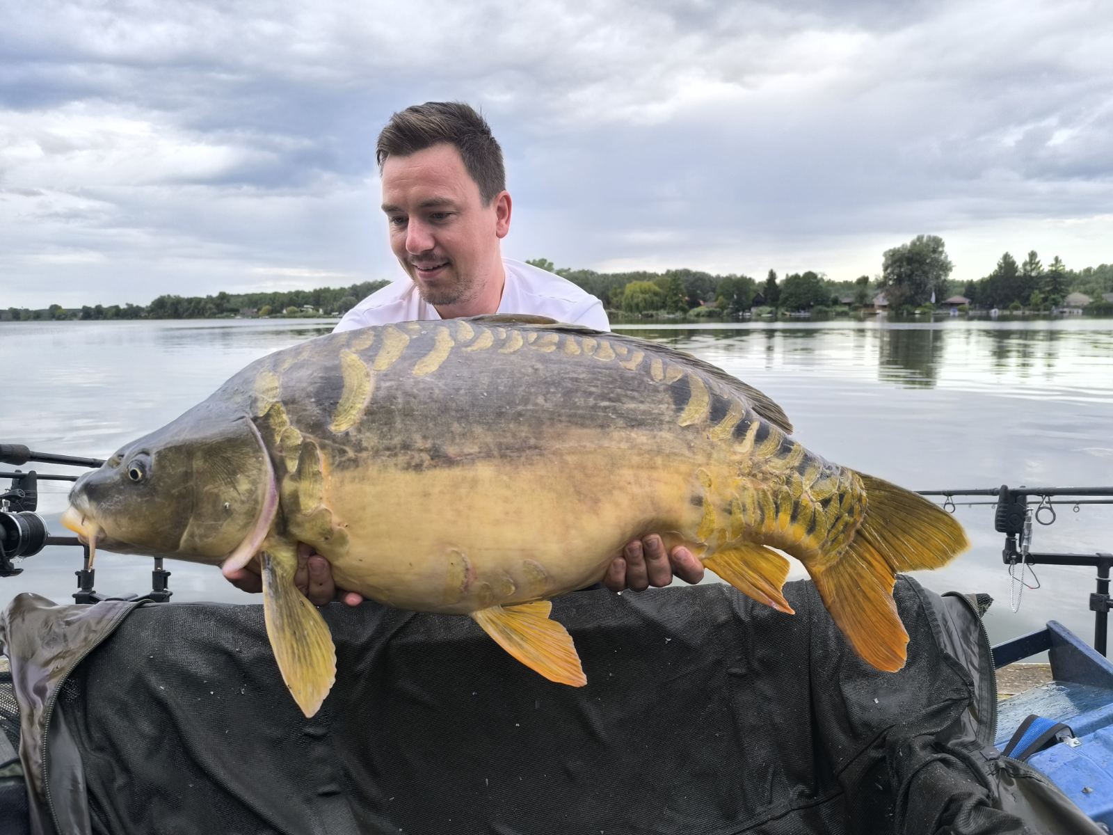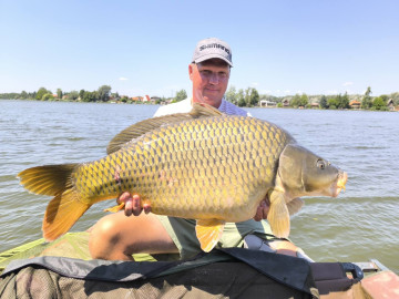 Napos idő, észak-keleti szél, 15 perces fárasztás csónakból. Az RSD Carp Cup bojlis versenyen fogott hal.