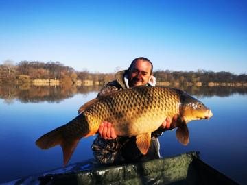 Gyenge szél, 25 perces fárasztás csónakból. Az RSD Carp Cup bojlis versenyen fogott hal.