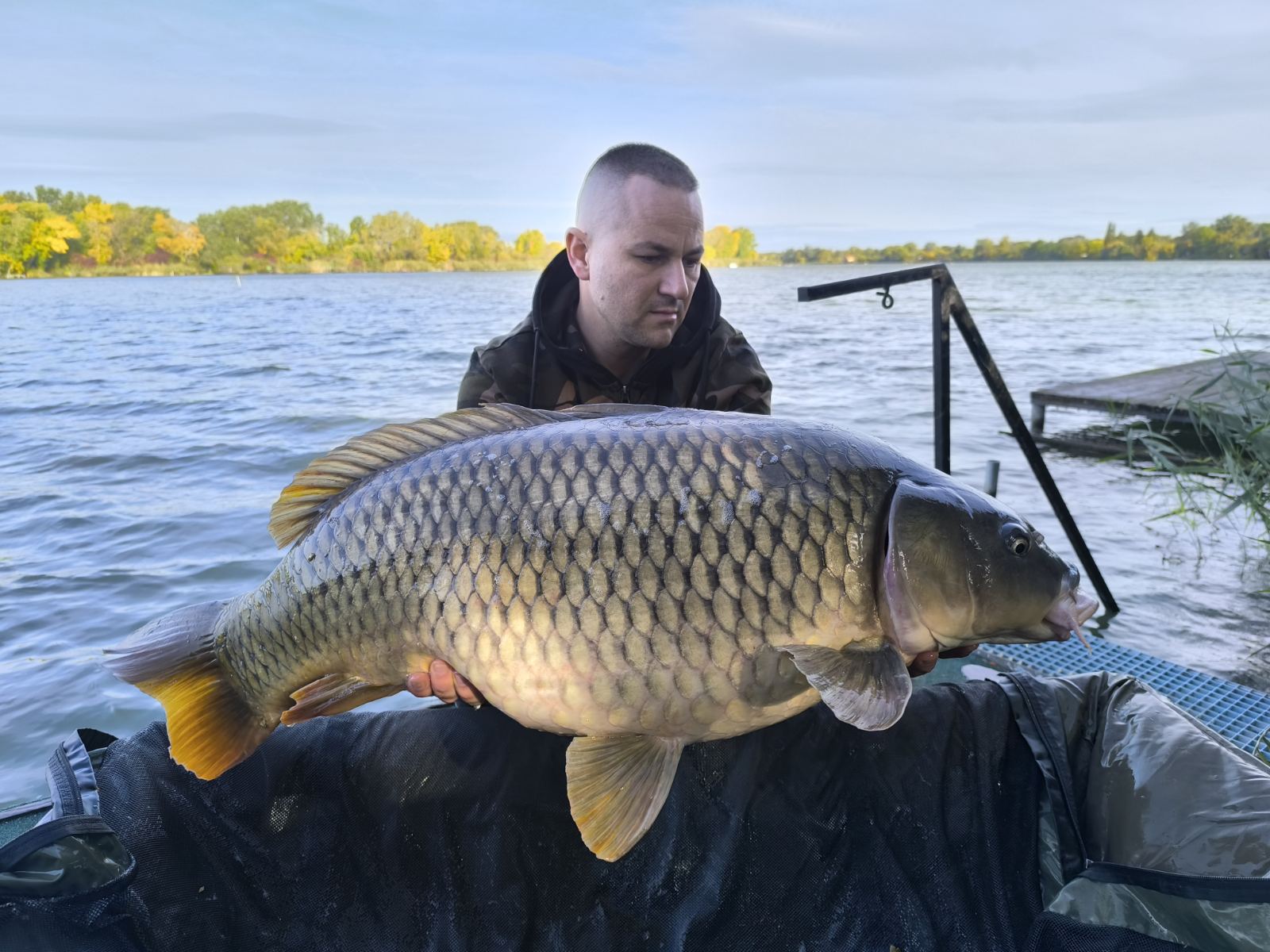Gyenge észak-keleti szél, 20 perces fárasztás partról. Az RSD Carp Cup bojlis versenyen fogott hal.