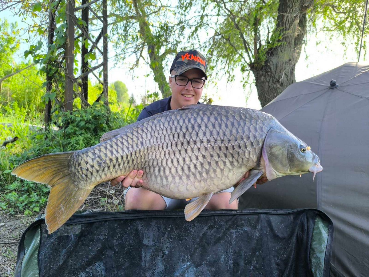 Napos idő, észak-keleti szél, 15 perces fárasztás csónakból. Az RSD Carp Cup bojlis versenyen fogott hal.