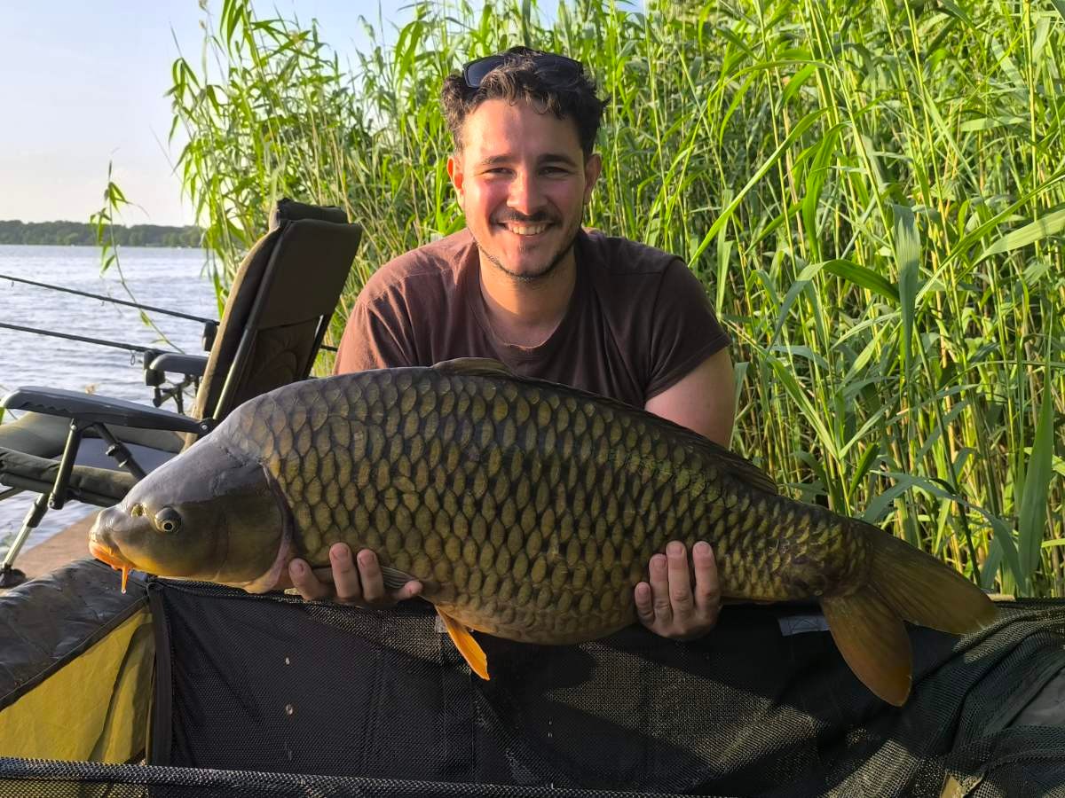 Gyenge szél, 25 perces fárasztás csónakból. Az RSD Carp Cup bojlis versenyen fogott hal.