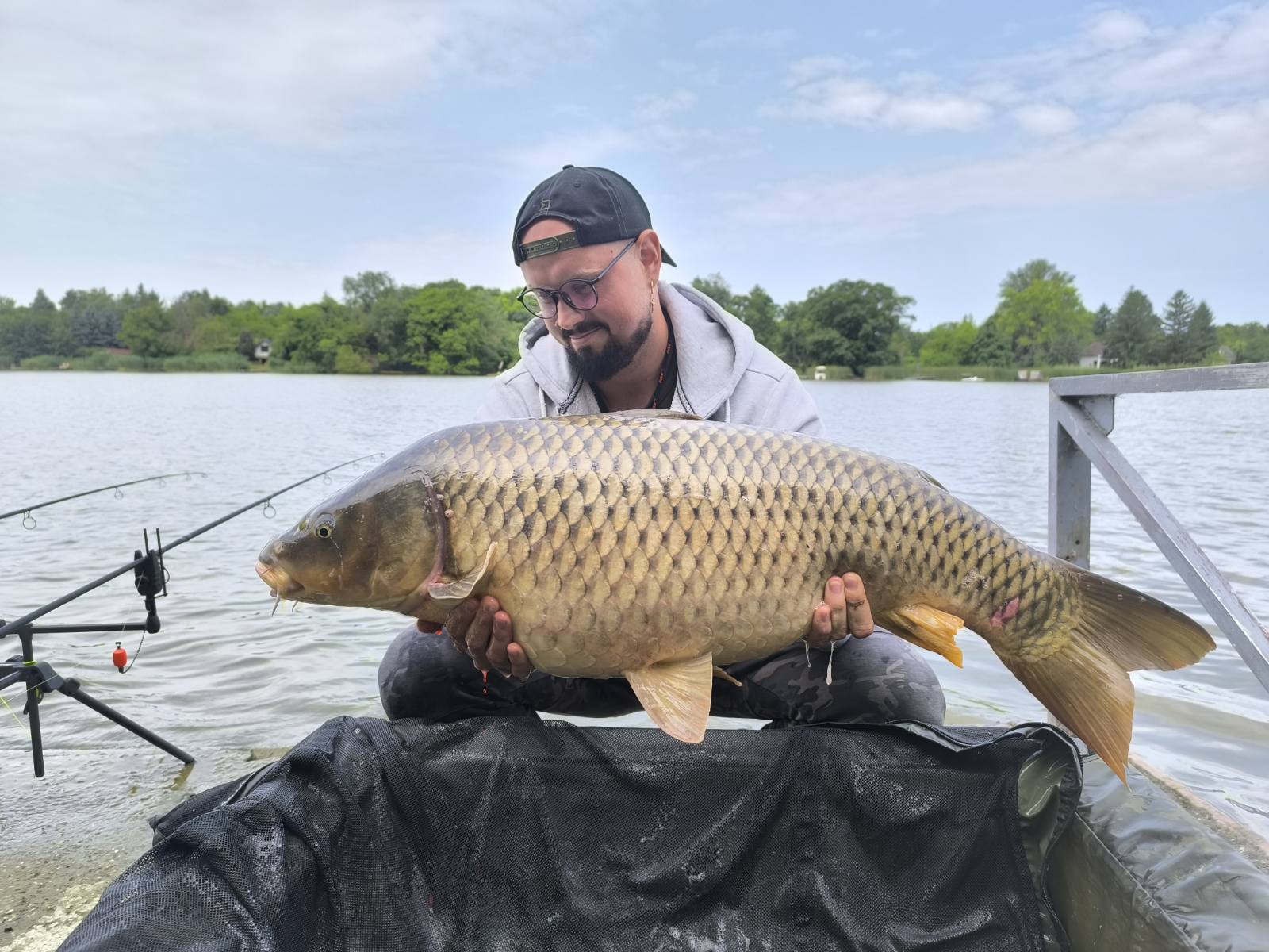 Borult, esős idő, enyhe szél, 15 perces fárasztás partról