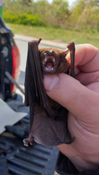 A Duna-Ipoly Nemzeti Park Igazgatóság kérésére segítettünk 9 db védett rőt korai denevér mentésében és biztonságba helyezésében. A kb. 100-150 egyedből álló kolónia tagjai, 8 nőstény és egy hím egy kiskunlacházi fakivágás kapcsán kerültek bajba. Sikeresen kimentettük őket, így most már a Fővárosi Állatkert vendégei, ahol meg is kezdték az evés-ivást. Amint megerősödnek, visszavisszük őket a kivágott fa melletti nagy odvas nyárfához, ahova a kolónia többi tagja átköltözött. Éjszaka kell őket elengedni, hogy könnyen elvegyülhessenek a repkedő denevércsapatban.
