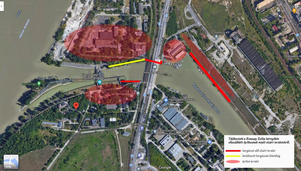 A Kvassay-zsilip jobb parti (csepeli oldali) üzemi területére a KDVVIZIG ebben az évben az építési munkálatok miatt nem ad ki belépési engedélyt, így csak a kerítésen kívül megengedett a horgászat. A bal parti oldalon (a tavaly lebontott VITUKI épület környéke) a kivitelező csak néhány belépési engedélyt ad ki az ott tárolt csónakok tulajdonosai részére. A bal parti szakasz a horgászok számára korlátozottan lesz megközelíthető, a vasúti és a közúti híd alatt az építési forgalom miatt nem lehet horgászni. A bal parti rendőrségi kikötő alatt kezdődő úgynevezett "Magaspart" felső fele el lesz kerítve, ez a szakasz tehát megközelíthetetlenné válik. Az elkerített résztől lefelé a magas part továbbra is hozzáférhető marad.