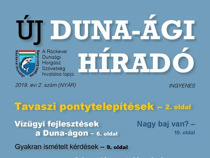 Megjelent a Ráckevei Dunaági Horgász Szövetség hivatalos lapjának, az Új Duna-ági Híradónak 2019. nyári száma.